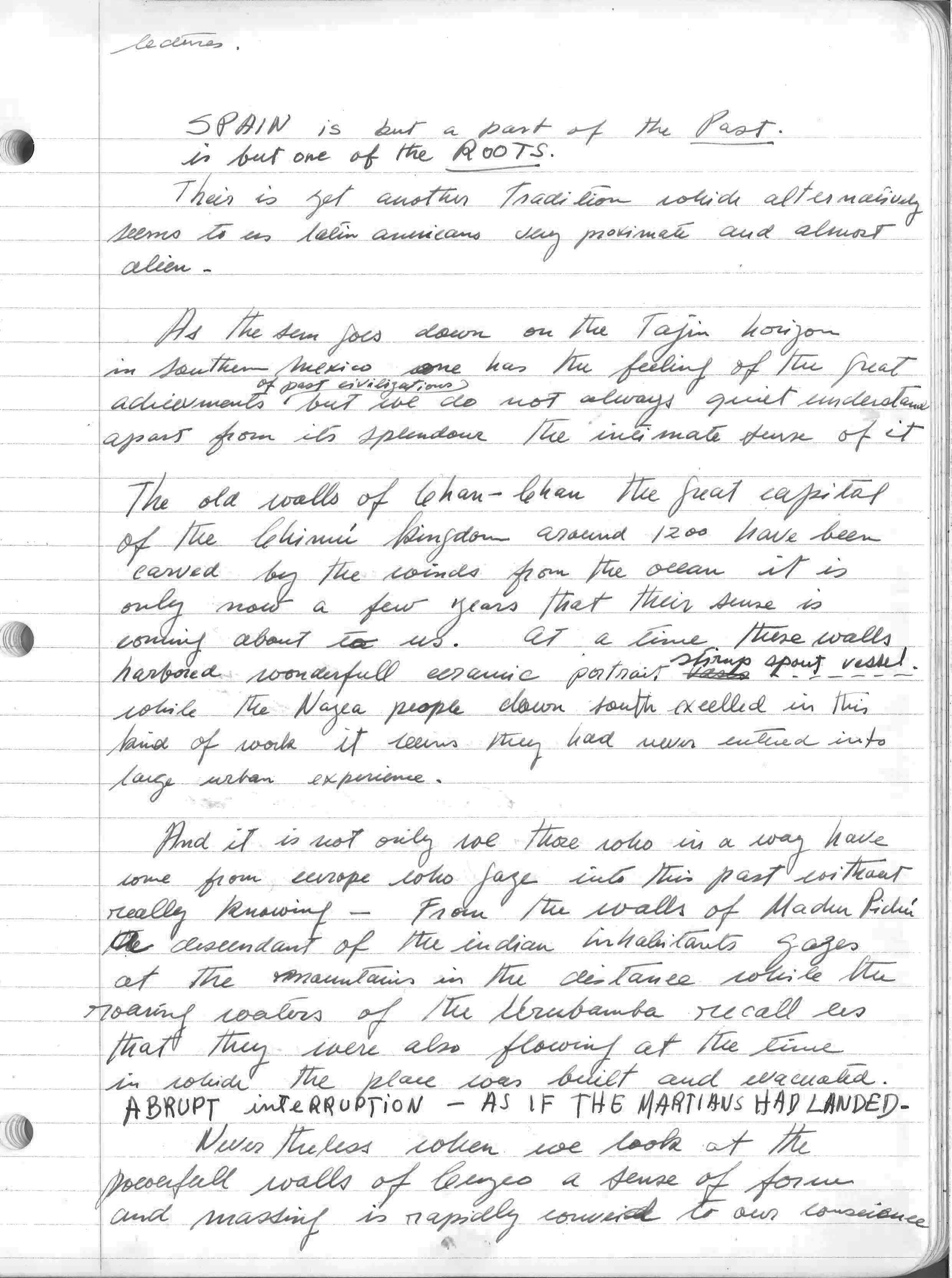Entre septiembre y diciembre de 1966 Francisco Bullrich (1929-2011) dictó un seminario sobre Arquitectura Latinoamericana en Yale University School of Architecture. El estudio específico de las problemáticas de la región formaba parte de las políticas educativas de la universidad desde la segunda posguerra. Invitado por Richard Morse y George Kubler, el enfoque propuesto por Bullrich ponía en duda la existencia de una condición “latinoamericana” homogénea. Un recorrido por los manuscritos de esas clases –en gran parte inéditos– que fueron la base de su libro New Directions in Latin American Architecture (1969) permite reconocer las claves de una mirada que invita, aún hoy, a repensar críticamente las relaciones entre el peso de la cultura precolombina, la impronta de la colonización y la arquitectura “latinoamericana”, desde una perspectiva global.