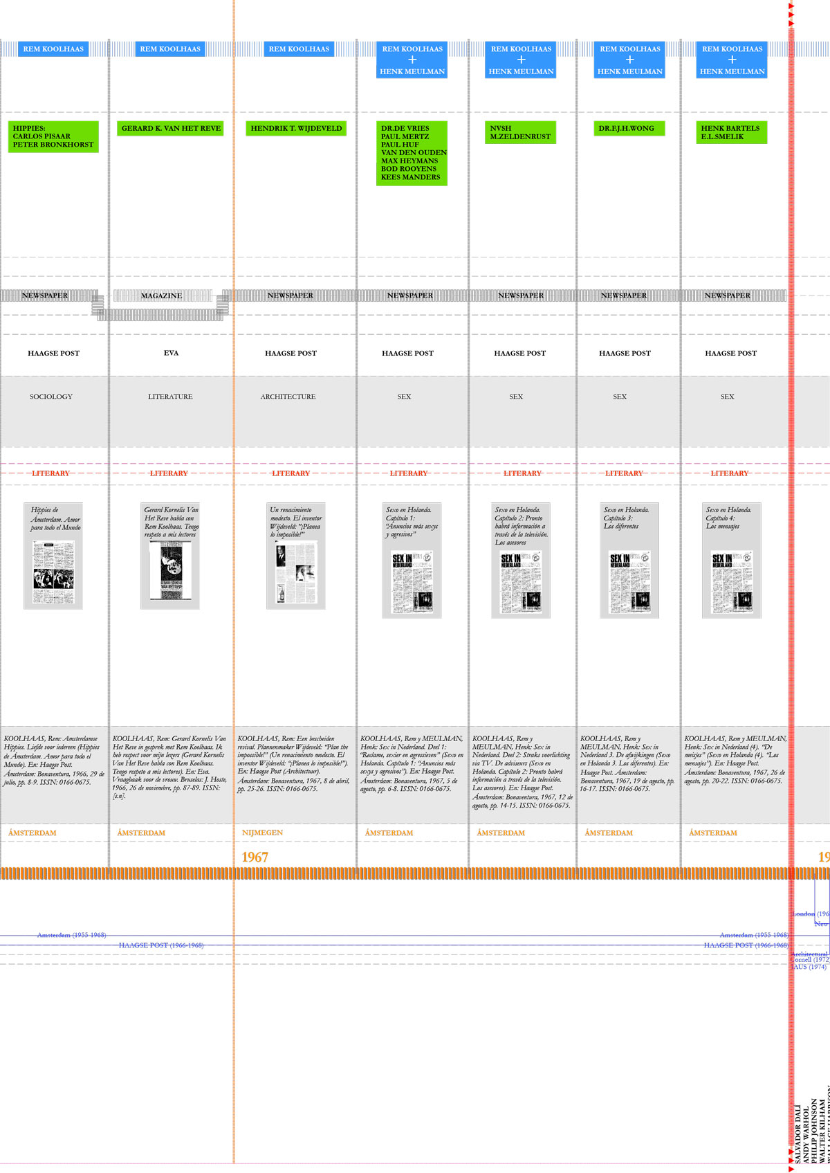 Rem Koolhaas ejerce otra forma de ser arquitecto: entrevistando. Sus inicios como entrevistador acontecen entre 1963 y 1968 en el movimiento del Nuevo Periodismo Holandés: el Haagse Post y el equipo dirigido por el artista Armando, con un tipo de periodismo artístico donde la entrevista es vivir en directo no la noticia sino la representación de la noticia. Más allá de lo biográfico, este periódico supone su base formativa como un arquitecto en cuya práctica las entrevistas constituyen uno de sus formatos de trabajo más frecuentes. La propuesta del artículo es el rol de la entrevista como cuerpo de conocimiento y de pensamiento crítico tomando como pretexto a Koolhaas. El objetivo es elaborar un cronograma con las entrevistas realizadas por Koolhaas desde los sesenta para mostrar cómo las utiliza con una función práctica y teórica, contribuyendo a la comprensión del valor ensayístico, instrumental y especulativo de la transmisión oral en arquitectura.