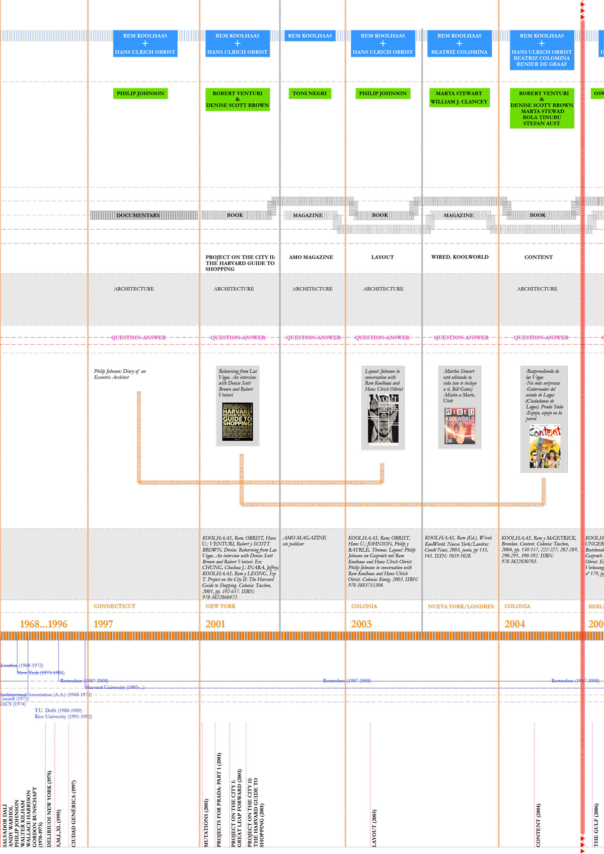 Esta investigación se estructura en una introducción que contextualice el género periodístico y la historia oral, un estado de la cuestión que constate las escasas contribuciones existentes sobre la materia, una metodología de análisis documental que permita aportar citas de parte de las entrevistas que ilustre la propuesta de un entrevistador arquitecto, y una discusión para sugerir que Koolhaas busca en las entrevistas desentrañar las claves de las relaciones con el poder. Algunos resultados se evidencian en los maratones de entrevistas que realiza en distintas ciudades y la conclusión es que sus inicios en el Haagse Post definen su forma de trabajar como arquitecto: el periodismo artístico de las entrevistas literarias en sus escritos teóricos y el periodismo informativo de las entrevistas directas en su práctica investigadora. Todos los entrevistados juntos conforman un enorme retrato de Koolhaas y el del arquitecto que quiere ser (y que, definitivamente, es).