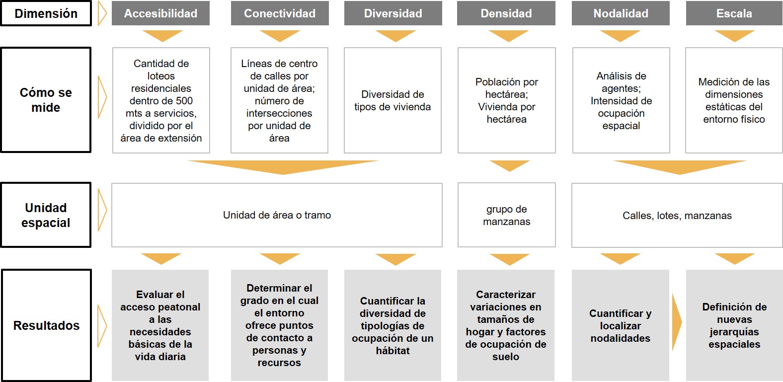 Los estudios urbanos relacionados con sostenibilidad están pasando por una fase de enriquecedora experimentación. Esto, con la exploración de diversas metodologías inspiradas en hacer frente a los impactos significativos, actuales y futuros del cambio climático en ciudades, que plantea nuevos desafíos para el desarrollo de áreas urbanas. Tales desafíos, son especialmente relevantes en tiempos cuando importantes transformaciones urbanas están en curso en el sur global. El siguiente artículo tiene por objetivo elaborar una metodología para explorar y evaluar el potencial sostenible de la forma urbana en barrios de ciudades de escala intermedia. La metodología aborda seis criterios de entorno construido relacionados con sostenibilidad: escala, accesibilidad, conectividad, densidad, diversidad y nodalidad. La metodología se aplica a un barrio en la ciudad de Temuco en el sur de Chile. Los resultados muestran la importancia de la adaptabilidad edificatoria para generar diversidad de usos a nivel de manzana, lo que a su vez promueve una mayor sostenibilidad de la forma urbana. Por otra parte, la sobre densidad de población y de vivienda en lotes residenciales disminuye la accesibilidad peatonal en las calles interiores. Mientras que el uso mixto vertical y la alta variación de densidades en bloques de manzanas continúan siendo la mejor respuesta para promover la interacción social y la alta actividad colectiva en el espacio urbano. El artículo concluye sobre el valor operacional de la metodología propuesta y respecto a los desafíos futuros para promover el desarrollo de formas urbanas más sostenibles en ciudades intermedias del sur de Chile