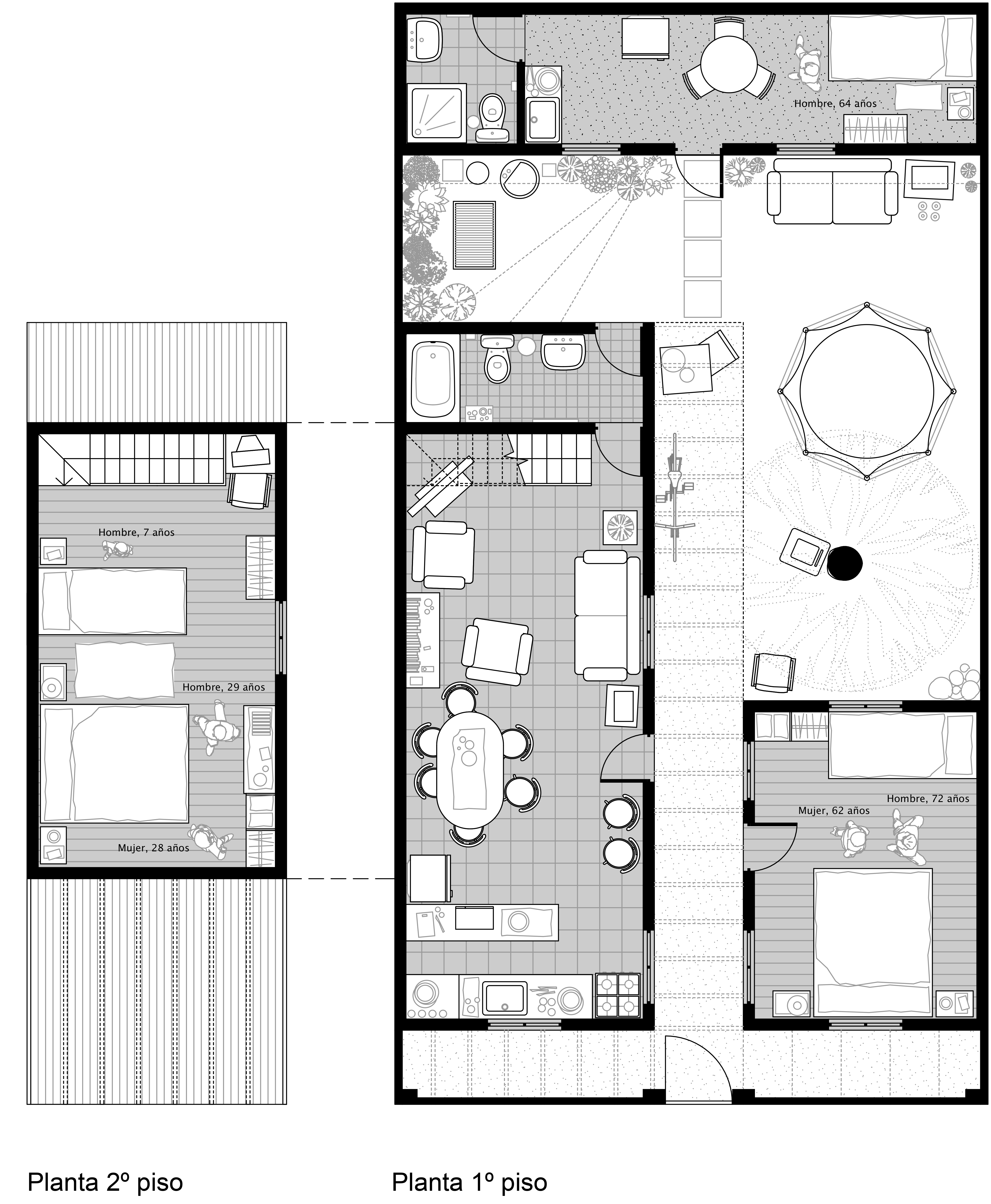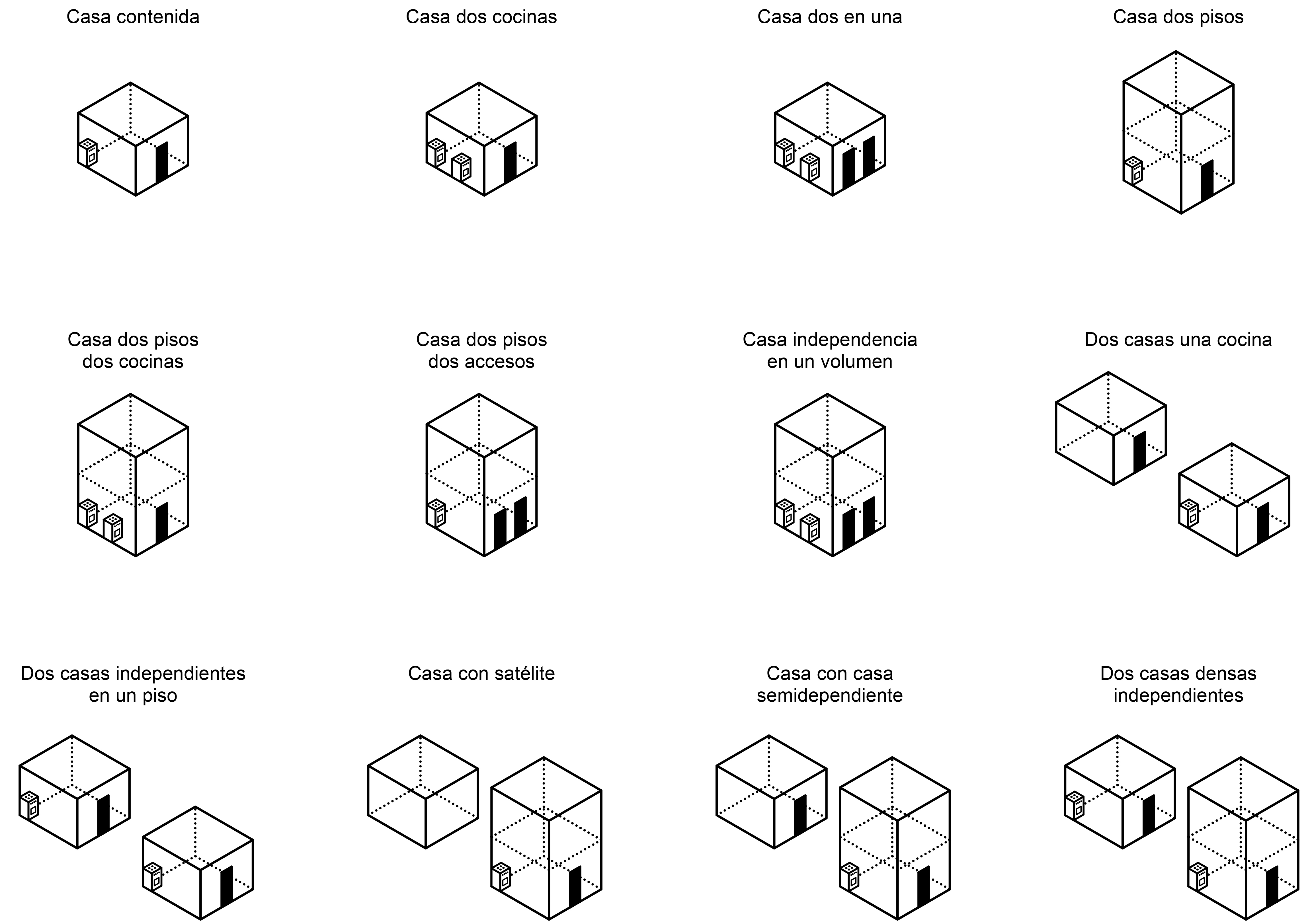 El aumento constante del allegamiento en zonas centrales de la ciudad de Santiago no es más que el reflejo de una estrategia utilizada por los habitantes de sectores vulnerables para mantenerse en sectores bien localizados. Ante una política habitacional restrictiva que expulsa a estos habitantes a la periferia y una vivienda de mercado a precios inasequibles, la cohabitación en familias extensas aparece como una alternativa que les permite mantener sus redes, acceso a la ciudad consolidada y fuentes laborales. Esta cohabitación de familias extensas o co-residencia, las induce a generar nuevas tipologías habitacionales que permiten sostener este estilo de vida. Para ello modifican las viviendas en que viven de acuerdo con sus intereses, necesidades y capacidad económica. Para comprender estas tipologías se analizaron 100 casos de familias extensas en situación de allegamiento en el pericentro de Santiago. Esto permitió reconocer y categorizar 11 tipologías de ocupación del sitio y 12 de organización de la vivienda. El estudio revela una amplia variedad de estrategias residenciales que interpelan al modelo de producción de vivienda para familias mononucleares basado en conceptos y elementos predefinidos de la arquitectura, los cuales quedan en cuestión por no reconocer la amplia diversidad de modos de habitar.