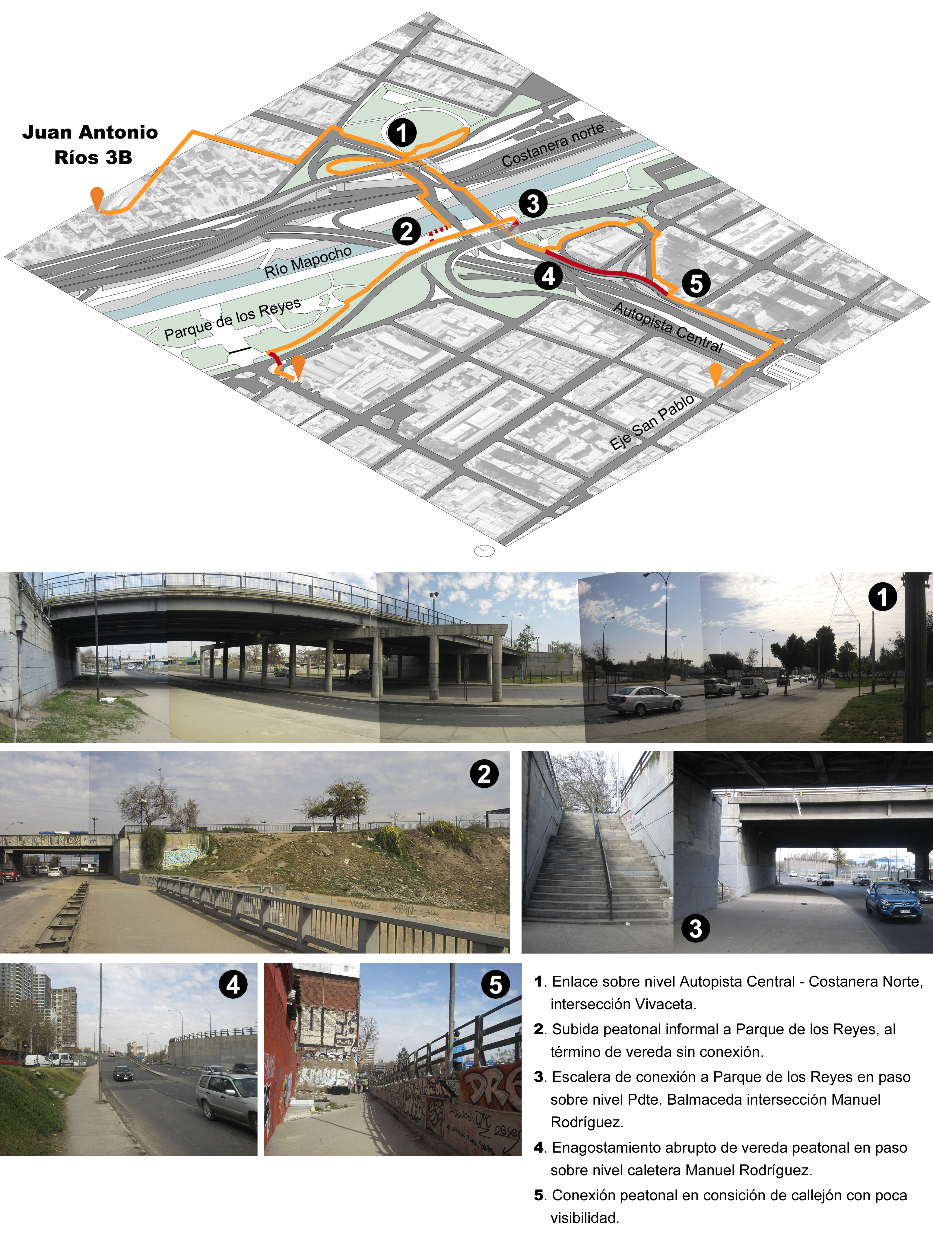 Dada la relevancia de la accesibilidad a bienes y servicios urbanos en la calidad de vida de los habitantes, y considerando que la caminata representa el principal modo de transporte en el Gran Santiago —34,6% de los viajes, según la Encuesta de Origen y Destino de 2012 (Universidad Alberto Hurtado, 2014)—, la presente investigación tiene como objetivo analizar y comparar las barreras estructurales que inciden en el área caminable a escala de barrio y estimar sus posibles efectos en los patrones de movilidad y acceso a bienes y servicios, en tres conjuntos habitacionales del Gran Santiago: población Juan Antonio Ríos sector 3B (Independencia), villa San Cristóbal (Recoleta) y villa Los Sauces (La Florida).